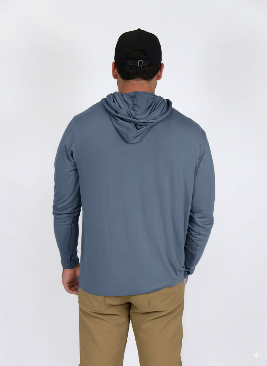 Our Bamboo Performance Sun Hoodie is designed for long days outdoors when protection and comfort matter most. Crafted from ultra-light bamboo fabric, it delivers a natural cooling effect while keeping you covered with UPF-rated sun protection. The buttery-soft feel doesn’t weigh you down, making it perfect for fishing trips, hikes, workouts, or everyday wear. Moisture-wicking and quick-drying, it keeps you comfortable whether you’re pushing limits or kicking back after.